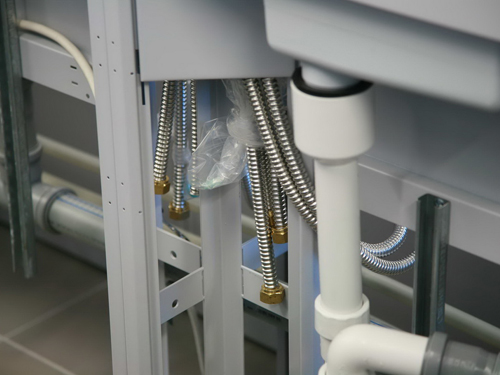 實(shí)驗(yàn)臺(tái)的防護(hù)性能: 實(shí)驗(yàn)臺(tái)應(yīng)具有良好的防護(hù)性能,能夠保護(hù)實(shí)驗(yàn)人員和實(shí)驗(yàn)環(huán)境。實(shí)驗(yàn)臺(tái)表面應(yīng)光滑易清潔,不易滋生細(xì)菌和微生物;實(shí)驗(yàn)臺(tái)邊緣應(yīng)設(shè)計(jì)成圓滑的形狀,減少受傷風(fēng)險(xiǎn)。此外,實(shí)驗(yàn)臺(tái)周?chē)鷳?yīng)設(shè)有防濺板或防濺簾,防止化學(xué)品或溶劑濺出,保護(hù)實(shí)驗(yàn)人員和實(shí)驗(yàn)設(shè)備。